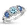 Ringfeaturing31/2cts.DeepSeaBlueTopaz,1/5cts.ChocolateDiamonds,1/5cts.NudeDiamondssetin14KStrawberryGold